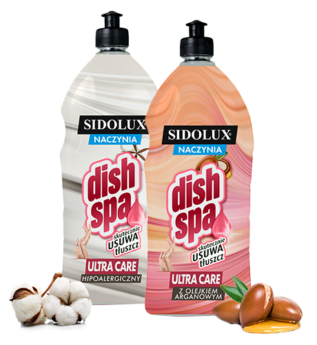 Wypróbuj żel i balsam z linii Dish Spa ULTRA CARE z dodatkiem gliceryny, stworzone z myślą nie tylko o skutecznym myciu naczyń, ale również wrażliwej skórze najbardziej wymagających dłoni.